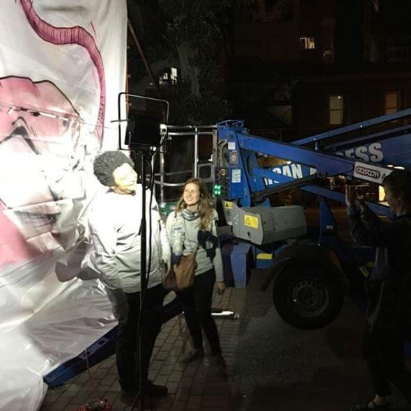 Unfortunately, we were unable to complete the installation due to weather conditions – but she will be completed over the course of the weekend, and Ellie’s fans can look forward to seeing her installed above Strand Street on Monday.